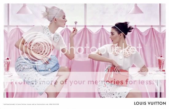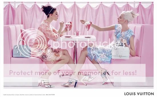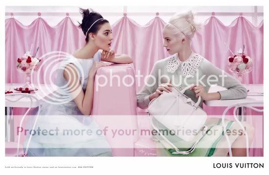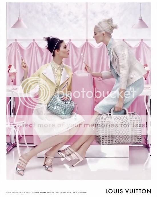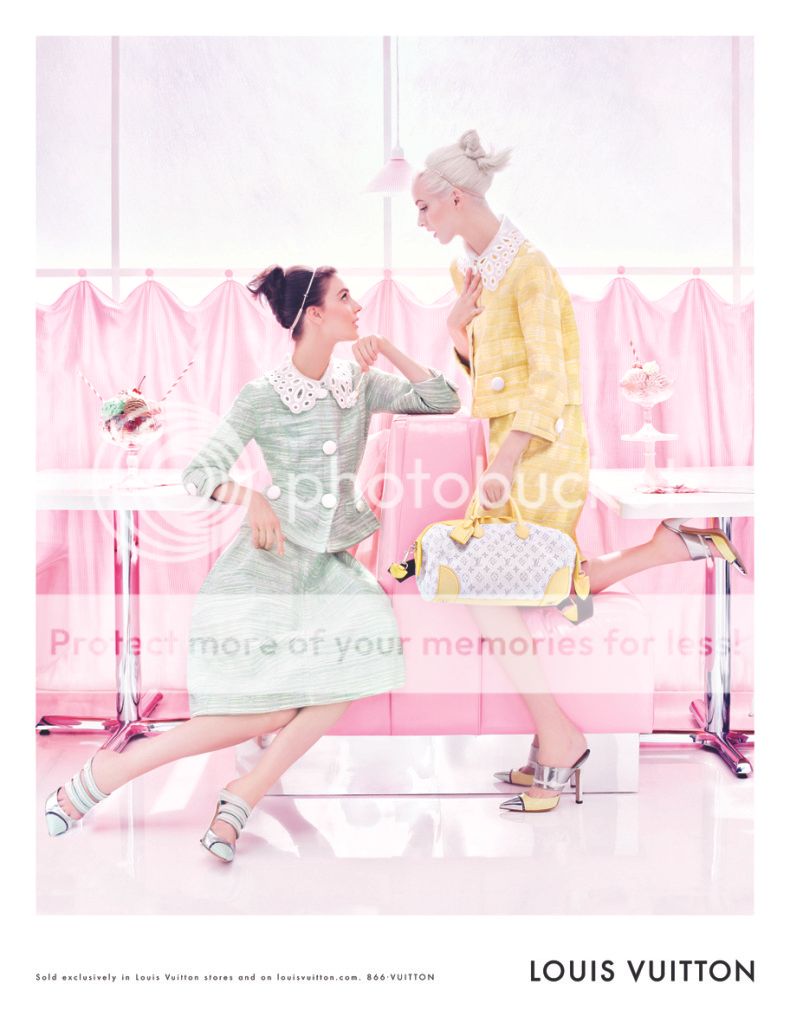 Me encantan las editoriales y campañas que cuentan una historia. La nueva campaña de Louis Vuitton va más allá. Es como si fuera una continuación del propio desfile, parece que las modelos acaban de bajarse del carrusel y han parado a tomar un helado en un mundo color pastel.