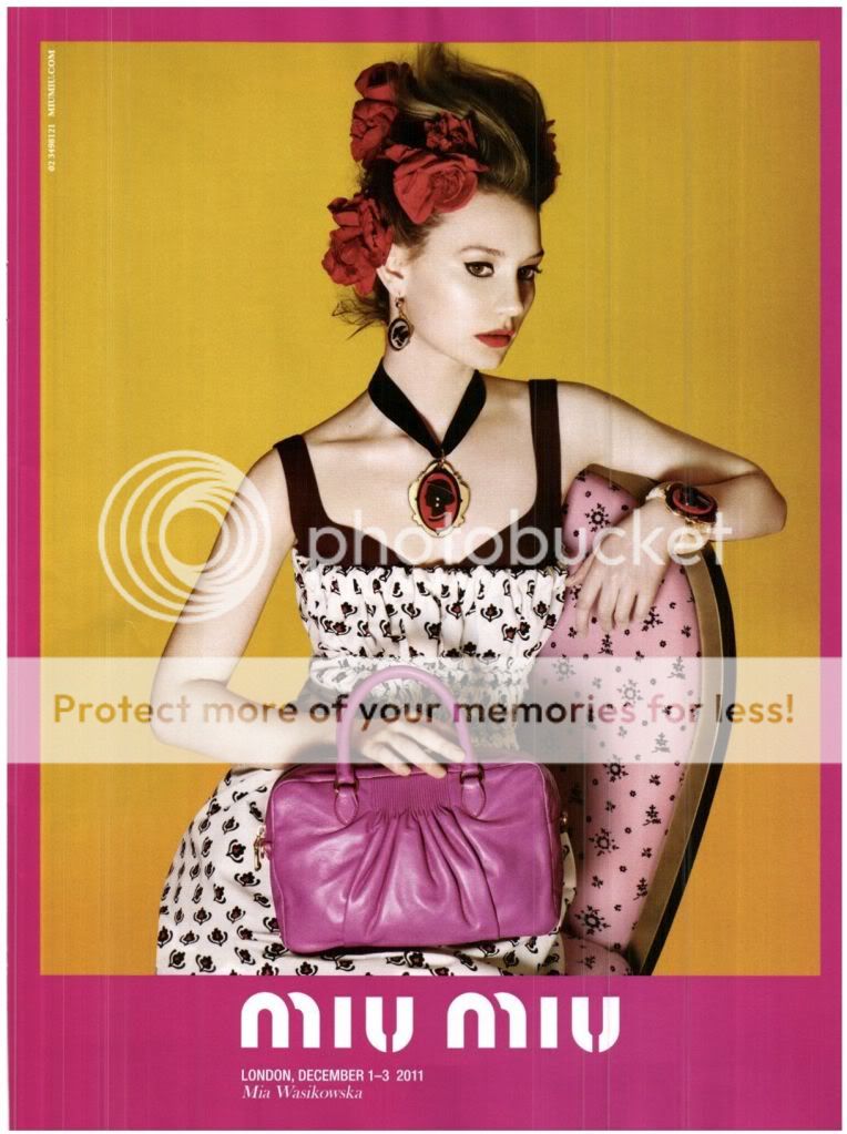 La actriz australiana Mia Wasikowska, que seguramente le suene su cara de Alicia en Alicia en el pais de las Maravillas o de Jane Eyre en Jane Eyre, es la nueva imagen de Miu Miu. Me parece que le da un toque muy místico, pero no consigo quitarme de la cabeza la imagen de Alicia en el país de las Maravillas....